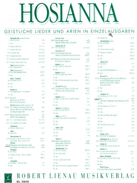 | Titel | Komponist | Interpret | Bearbeiter | Texter | Besetzung |
