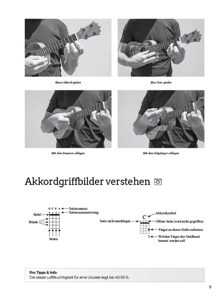 "Do-It-Yourself Ukulele" ist ein abwechslungsreicher Einsteigerkurs zum Selbstlernen. Anhand bekannter Pop-, Rock- und Blues-Songs sowie traditioneller und hawaiianischer Melodien lernst du Schritt für Schritt, wie ein Profi zu klingen. Mit mehr als 100 Video-Tutorials und über 80 Audio-Tracks zum Mitspielen und Anhören, die alle wichtigen Themen abdecken! Enthalten sind unter anderem: Grundlagen der Ukulele, das Lesen von Noten und Tabulaturen, Akkorde, wichtige Strum-Patterns, Erklärung der Noten auf dem Griffbrett, das Spielen von Single-Note-Melodien, Tonleitern, Fingerpicking, Technikübungen, wichtige Ukulele-Songs, Blues-Stile, die Verwendung eines Kapodasters und vieles mehr! Ausschnitte aus über 30 Songs helfen dabei, die Lektionen zu veranschaulichen, darunter: "Aloha Oe", "Brown Eyed Girl", "Can't Help Falling in Love", "Hallelujah", "(I Can't Get No) Satisfaction", "I'm Yours", "La Bamba", "Lava", "Lean on Me", "Let It Be", "Over the Rainbow", "Smoke on the Water", "Stand by Me", "Yellow Submarine" und mehr! Im Preis dieses Buchs ist der Online-Zugriff auf Audio- und Video-Dateien per Download oder Streaming enthalten. Den individuellen Zugangs-Code findest du im Innenteil. Ebenfalls enthalten ist PLAYBACK+, ein multifunktioneller Audioplayer, mit dem sich Audiodateien bei gleichbleibender Tonhöhe verlangsamen lassen. Außerdem kann man Loops markieren, Tonarten ändern und den Ton nach links oder rechts verlagern.