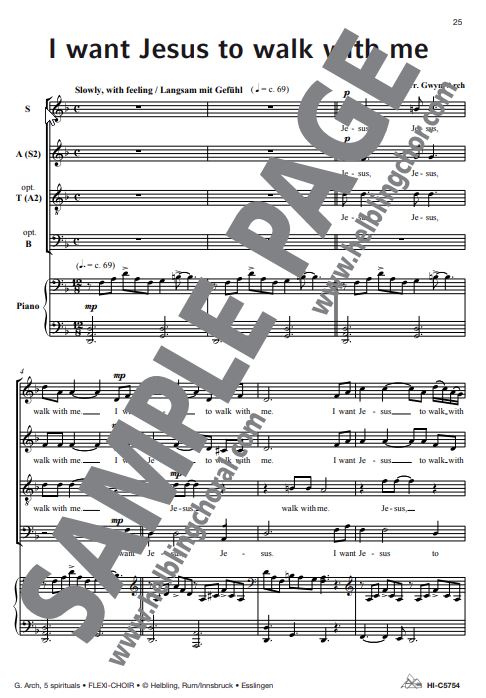 | I want Jesus to walk with me | Gwyn Arch | SA/SSA/SAT/SAB/SATB Klav Perc ad lib Git ad lib B ad lib |