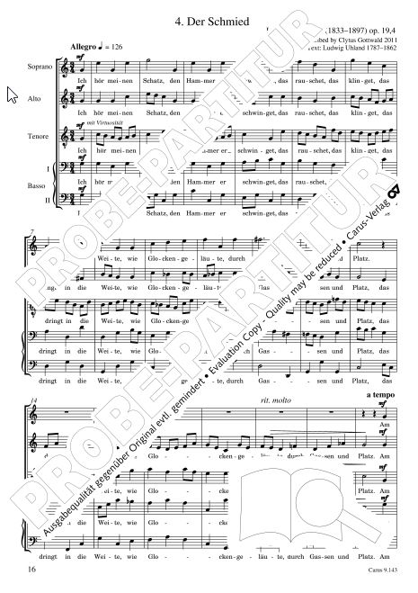 | Der Schmied, op. 19/4 | BRAHMS Johannes | Clytus Gottwald | SATBB | ||